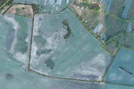 Так виглядють самосійні ліси на супутникових знімках, Київська область. Ділянка по центру фото виставлена на аукціон як ділянка сільсьгосподарського призначення – і скоро на місці дерев зростатиме кукурудза чи соняшник.